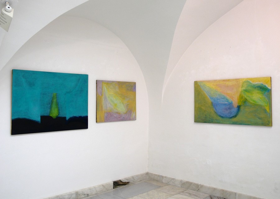 Michalovo dílo ve mně vyvolává pocit blízkosti k prostoru a tvaru. V jeho obrazech se něco hmotného vynořuje a zase zaniká. Stává se vnímaným avšak neuchopitelným. Ve své váze uniká gravitaci a ocitá se v náručí barvy. Tvar se vznáší v prostoru a prostor ve tvaru. Vlévají se do sebe naprosto přirozeně a nenuceně. Michal své obrazy tvoří dlouhodobě a neustále si nechává prostor pro to je proměňovat, dokud si není skutečně jistý o pravosti toho, co sděluje. Proto mnoho jeho obrazů je vícekrát přemalováno. Není to však opakované použití plátna, ale neustálá práce s vrstvami, které na sebe klade. Může se zdát, že obraz celý obmění, ale z mého pozorování jeho tvorby jsem pochopila, že každá předchozí malba a vrstva je ve výsledné formě citelná a má své podstatné místo. Odvážně narušuje její původní koncepci a dodává jí nový rozměr. Někdy obraz vytvoří a už se zdá neměnný, zato na jiných pracuje léta. Osobně mě tento proces baví sledovat a rozhodně bych si netroufala odhadovat směřování jediného z jeho obrazů...