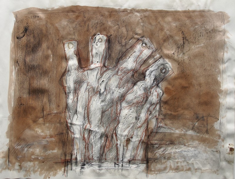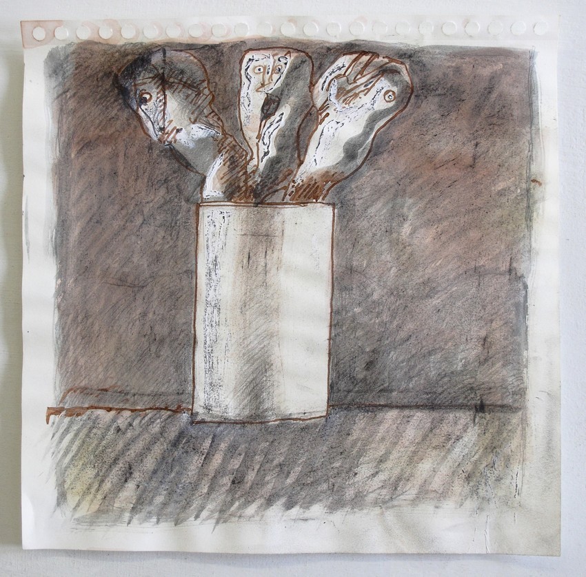 Směřuje ke zkratce a k volnější symbolice, ale v roce 1990 mu byla nabídnuta profesura figurální sochy na AVU a návrat k ní byl mu tak jasným zadáním a závazkem. Vedle Sochy II, ateliéru obecnější povahy, vedeného Hugem Demartinim a následně po něm Jindřichem Zeithammlem, strávil na akademii pětadvacet let a jejich programy se skvěle doplňovaly. Profesně i lidsky se oba vzájemně ctí a právě Jindřich a bezděčně i Jaromír Zemina nám seznámení se s ním a z něho i plynoucí domluvu na výstavě zprostředkovali. Díky za ni, jeho sošně cítěné kresby a sochy, ve vyznění bezeslovní básně hmoty, do linie galerie dokonale patří.