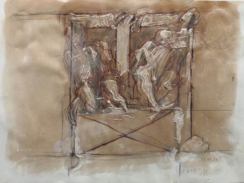 Červnová výstava je skromným nahlédnutím do rozsáhlé práce Jana Hendrycha, do výběru z jeho kreseb formátu A3, někdy i jen pracovních poznámek, vesměs ale rovnocenně doprovázejících sochařskou práci, zastoupenou ukázkami.