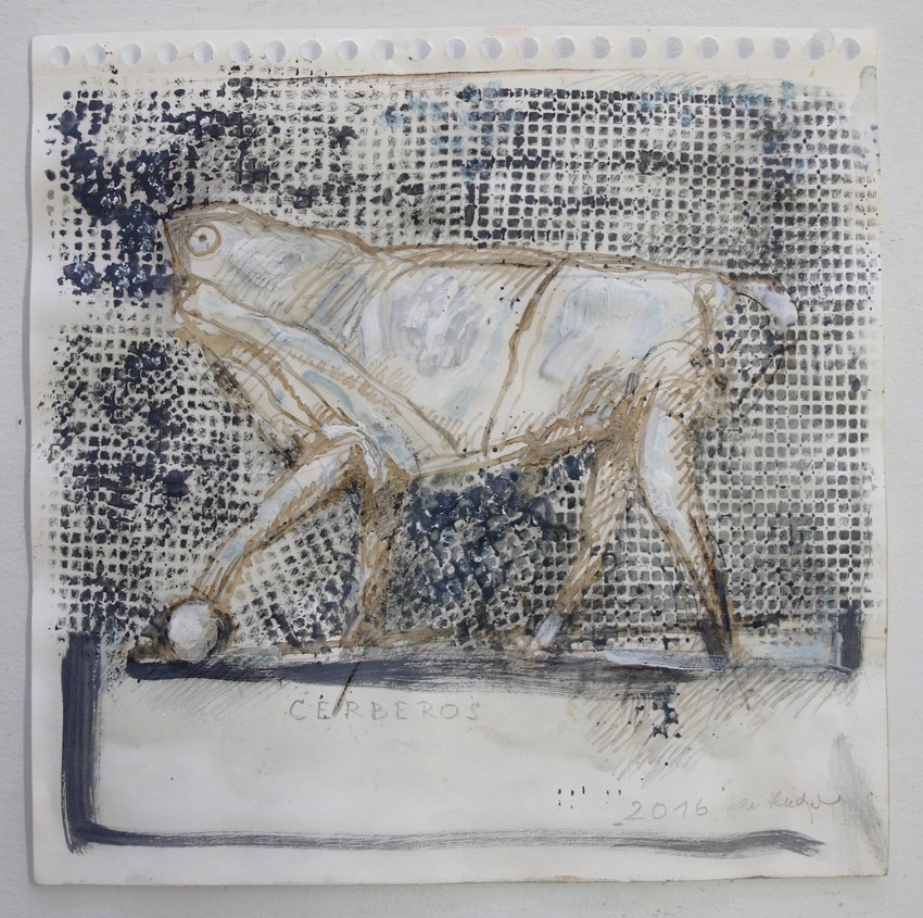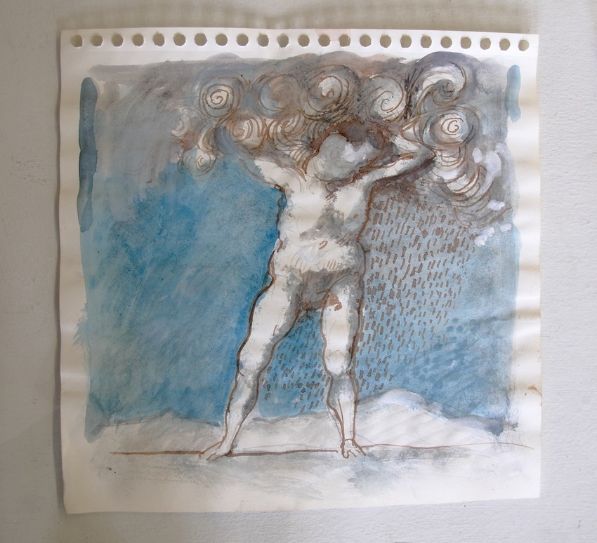 Tak jako staví sochu na prolínání hlíny s molitanem a odlévá ji spolu s kartonem, plastem, děrovaným plechem, někdy i probíjí hřeby, podkládá plochu papíru vymývanou sítí perlinky a oživuje rozpitým akvarelem. I v těch nejobecnějších polohách je věcně čitelný, ale jeho figura, hlava, zvíře, anděl, strážce nebo i věc je prostředníkem bytostně zpřítomněné situace člověka. Nedbá na proudy doby a jde svou cestou. V Čechách má nejblíž k baroku, po léta živil se jeho restaurováním. Ve světě je to Itálie, živelné středomoří a tamní sochař Marino Marini. Od něho s obdivem vrací se až k Etruskům a k antice, ke kořenům evropské kultury. Častým motivem je mu kypré ženské tělo v životodárné plnosti síly, v nelíbivé a o to syrovější kráse živé tkáně. V její vláčnosti, umocněné na hlíně nataženým a s ní do sádry odlitým molitanem.